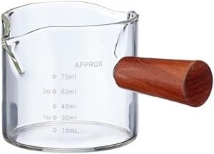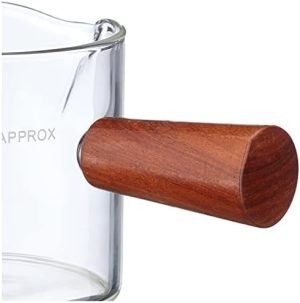 Espresso Shot Glass with Wooden Handle – Double Spout Coffee Measuring Shot Glass (Wood Handel) – Coffee Measuring Cup