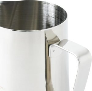 600 ml di capacità, comodo beccuccio utilizzabile anche per la latte art .. circa 2 cappucci più un macchiato